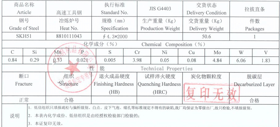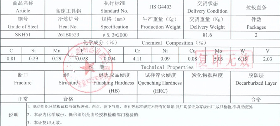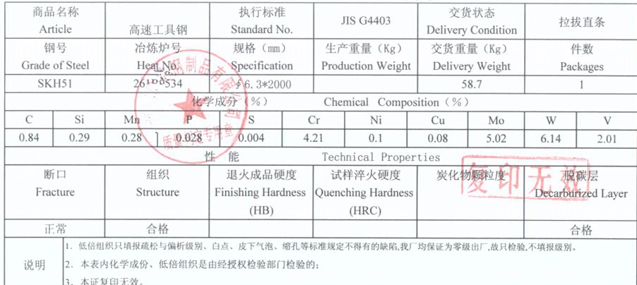 真材实料SKH51(M2高速钢)材质(硬度HRC62±2)假一赔十,材质可接受第三方检测机构评鉴。